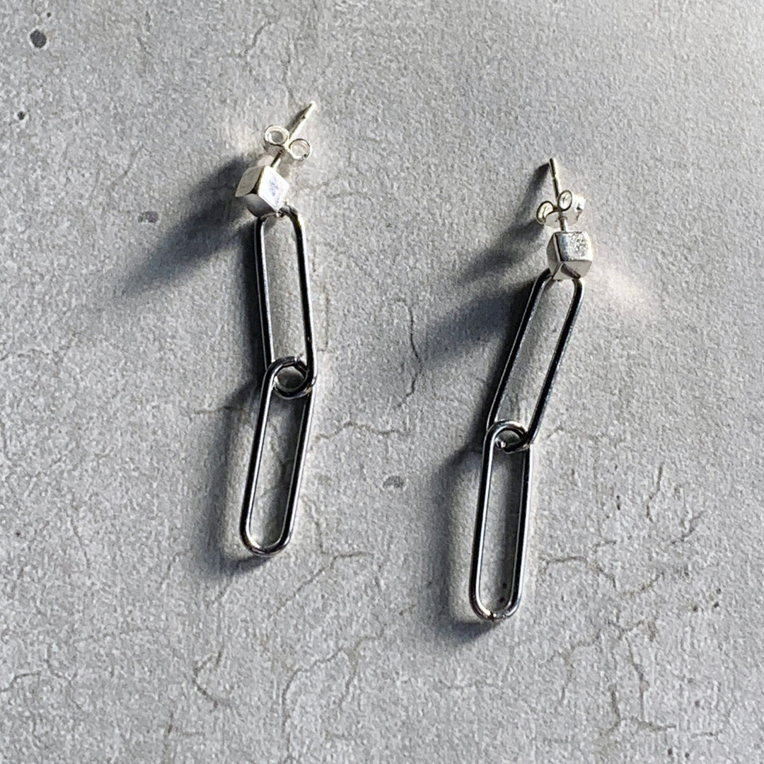 Double drop paperclip earrings by Factory Floor Jewels