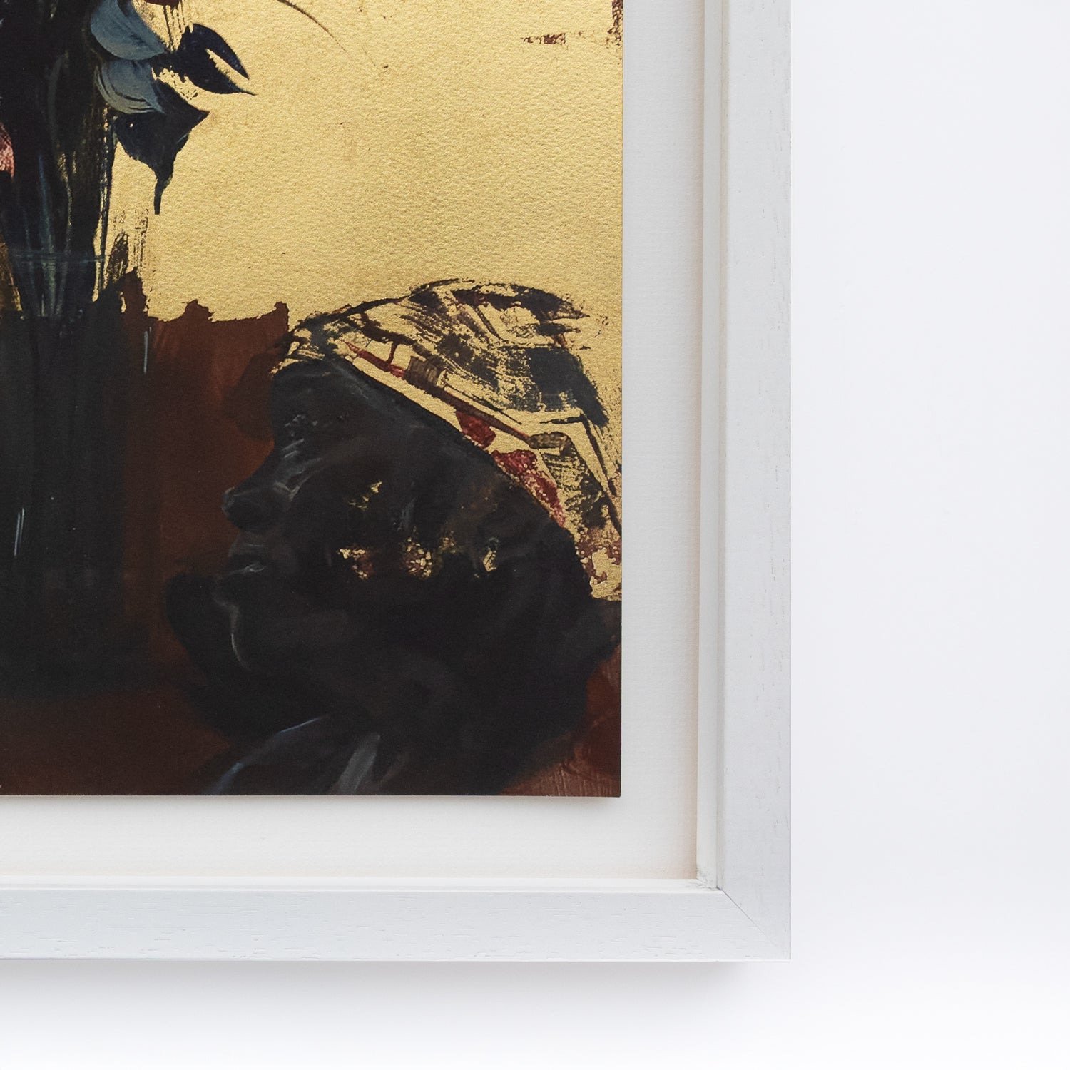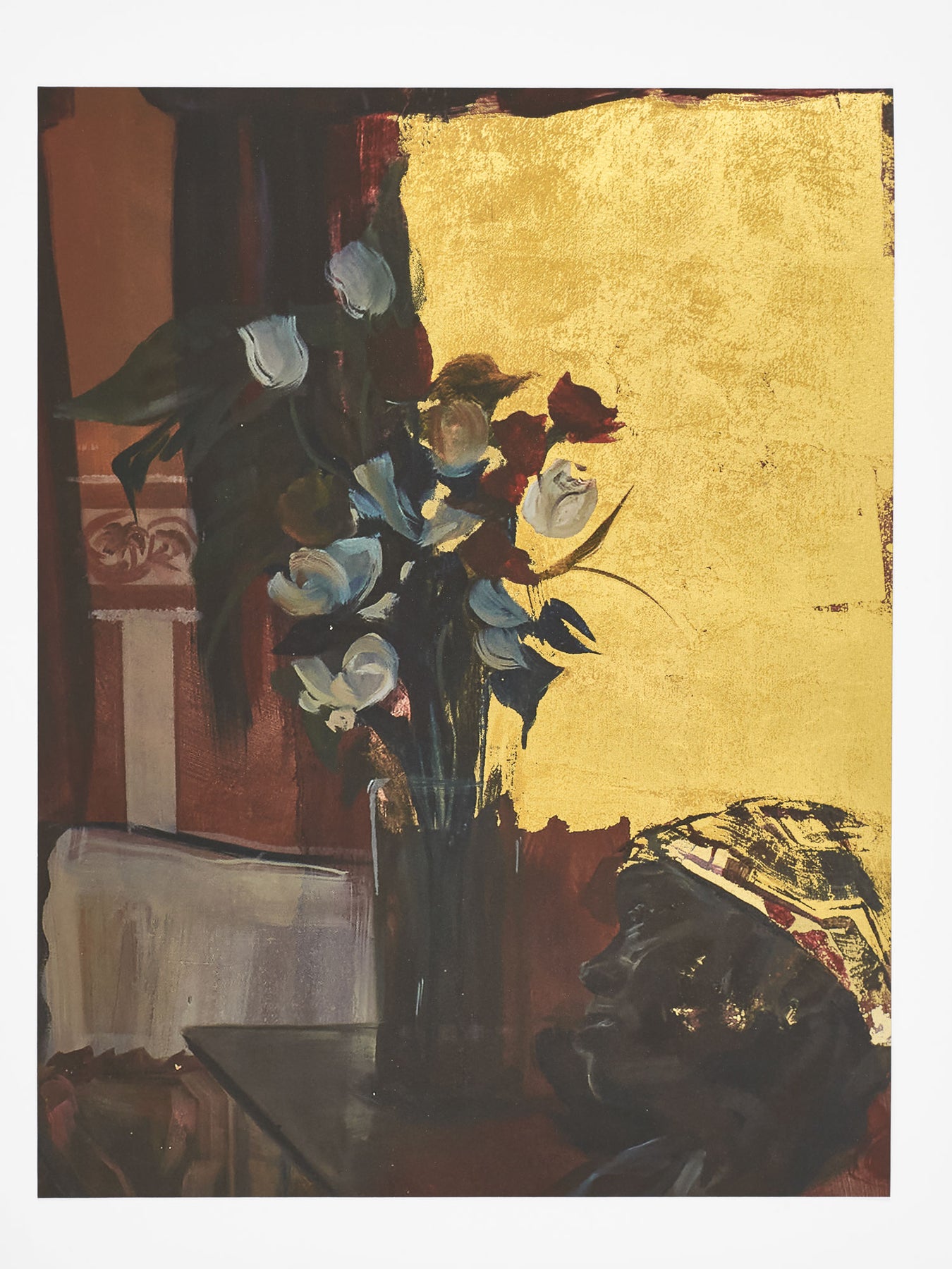 Digital pigment and silkscreen print with hand applied gold leaf on Somerset Velvet 330gsm