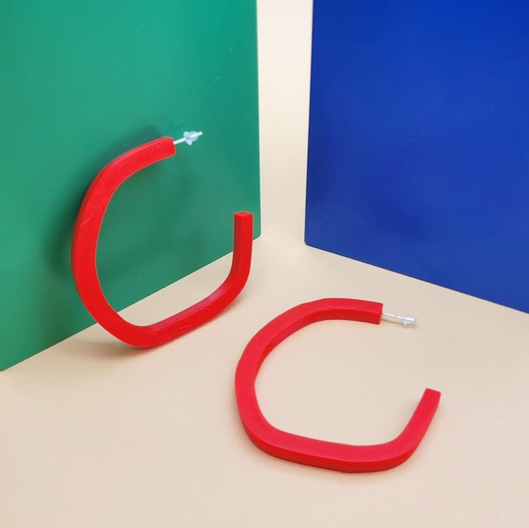 These large, lightweight earrings offer an alternative to the traditional style of hoop.