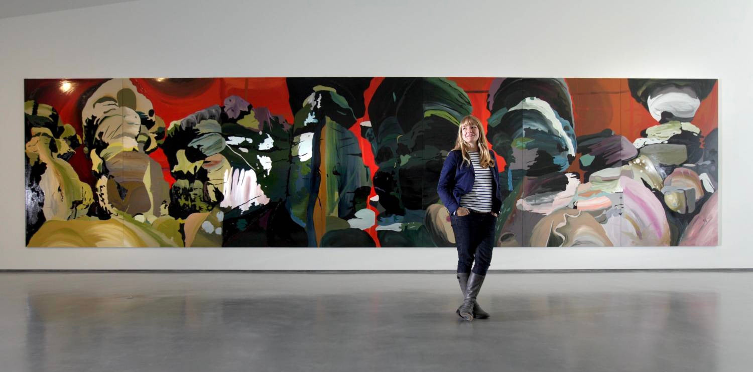 Based in Herefordshire, Woods initially studied sculpture at Bath University but now works as a self-taught painter. She exhibited at The Hepworth Wakefield in 2011 and in 2012 she completed a huge piece, 125 meters long, for the Olympic Park in London. She has had a subsequent solo show at Southhampton Art Gallery and at Harewood House in Leeds.